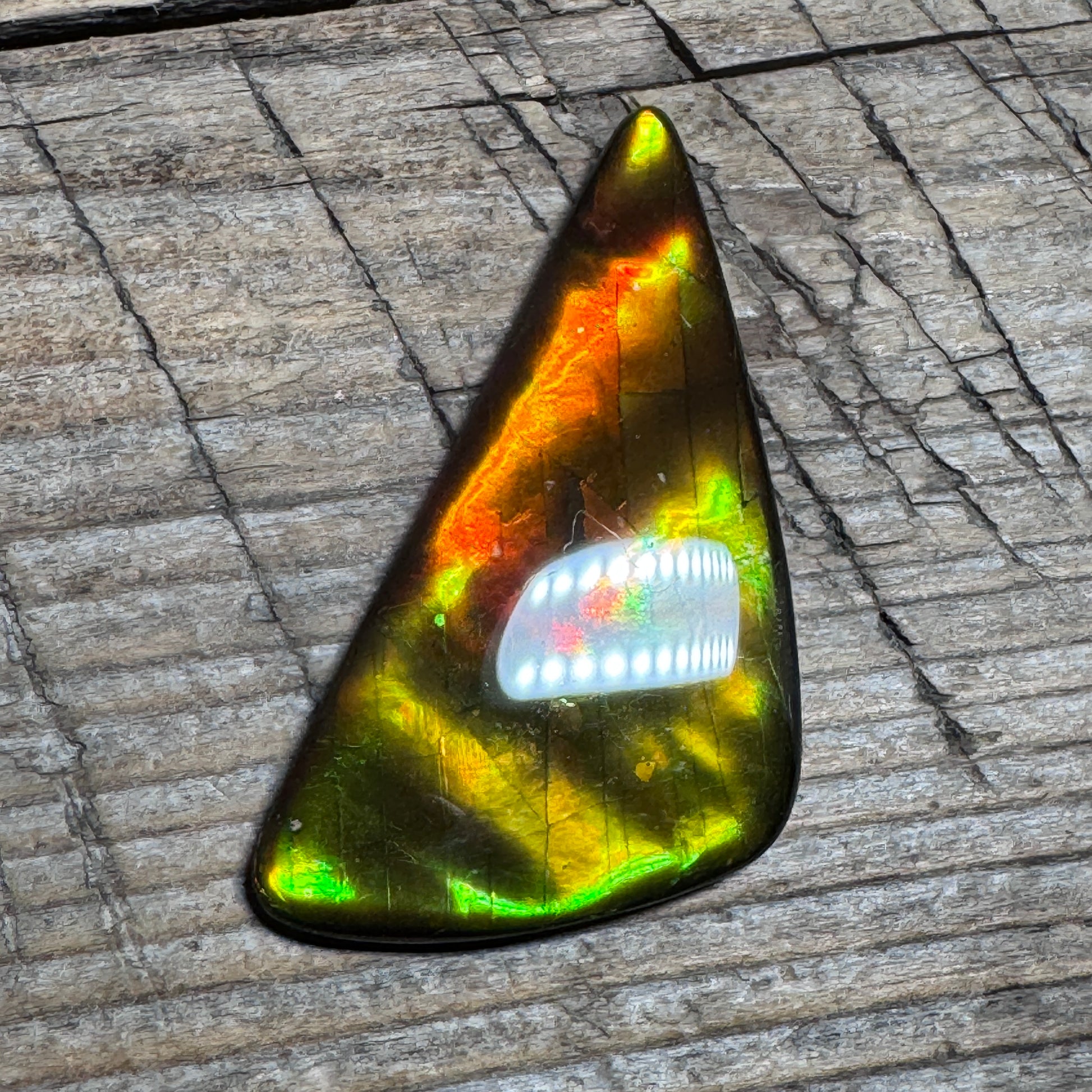 Just like pearls and other organic gemstones, Ammolite is soft and delicate. Wiping it gently with a damp, non-abrasive cloth or using pearl cleaner is recommended when cleaning is needed.