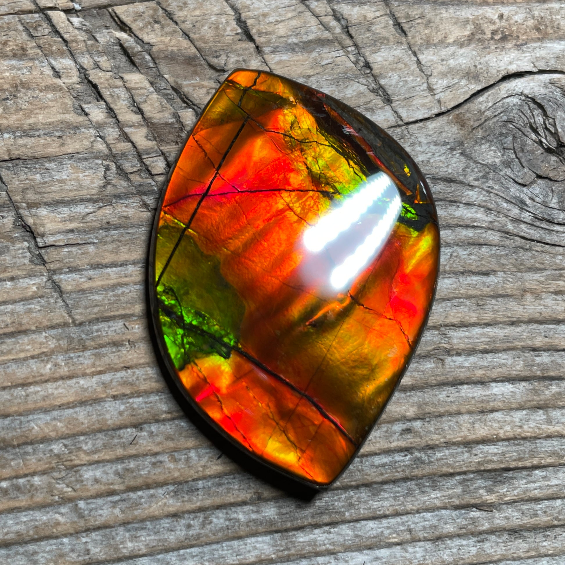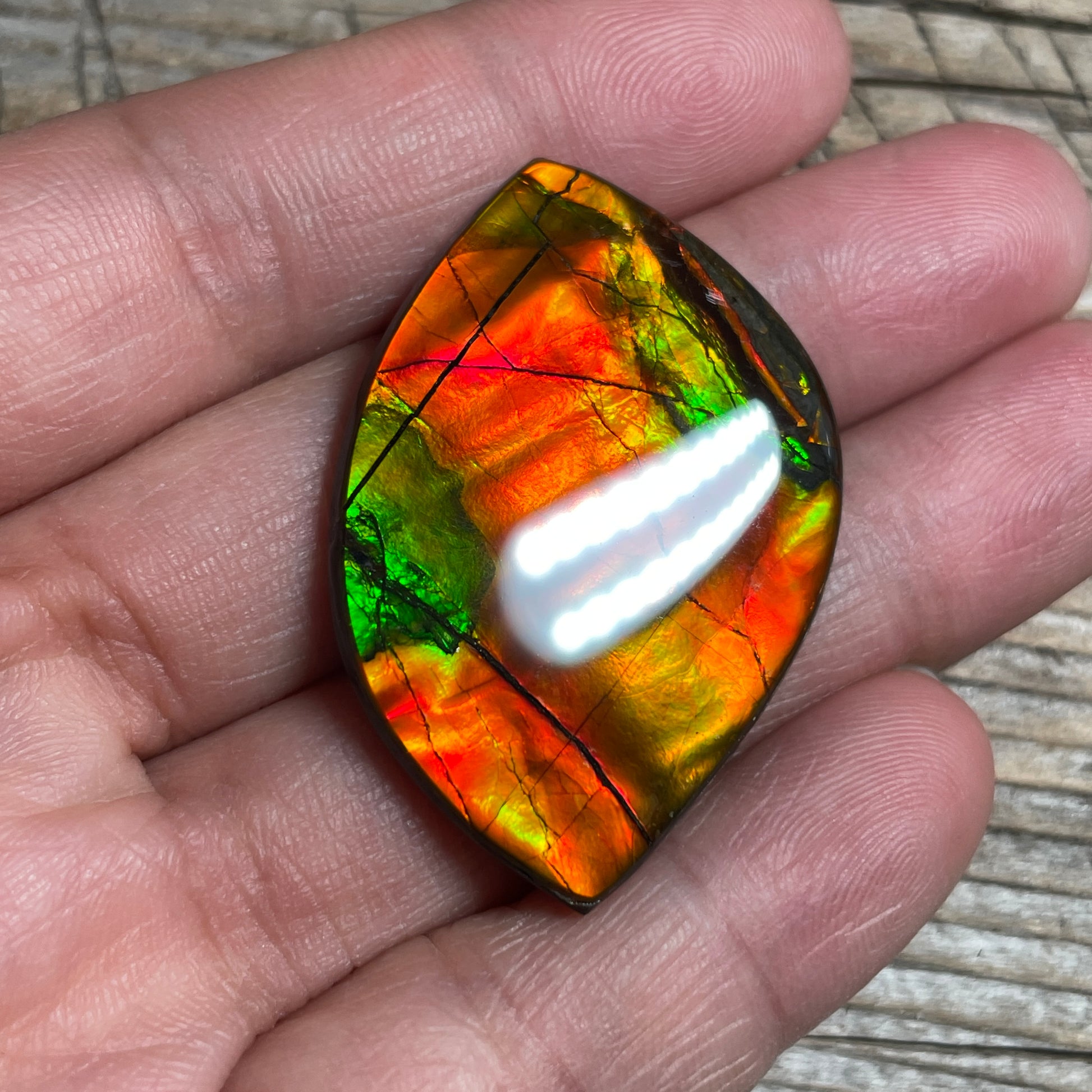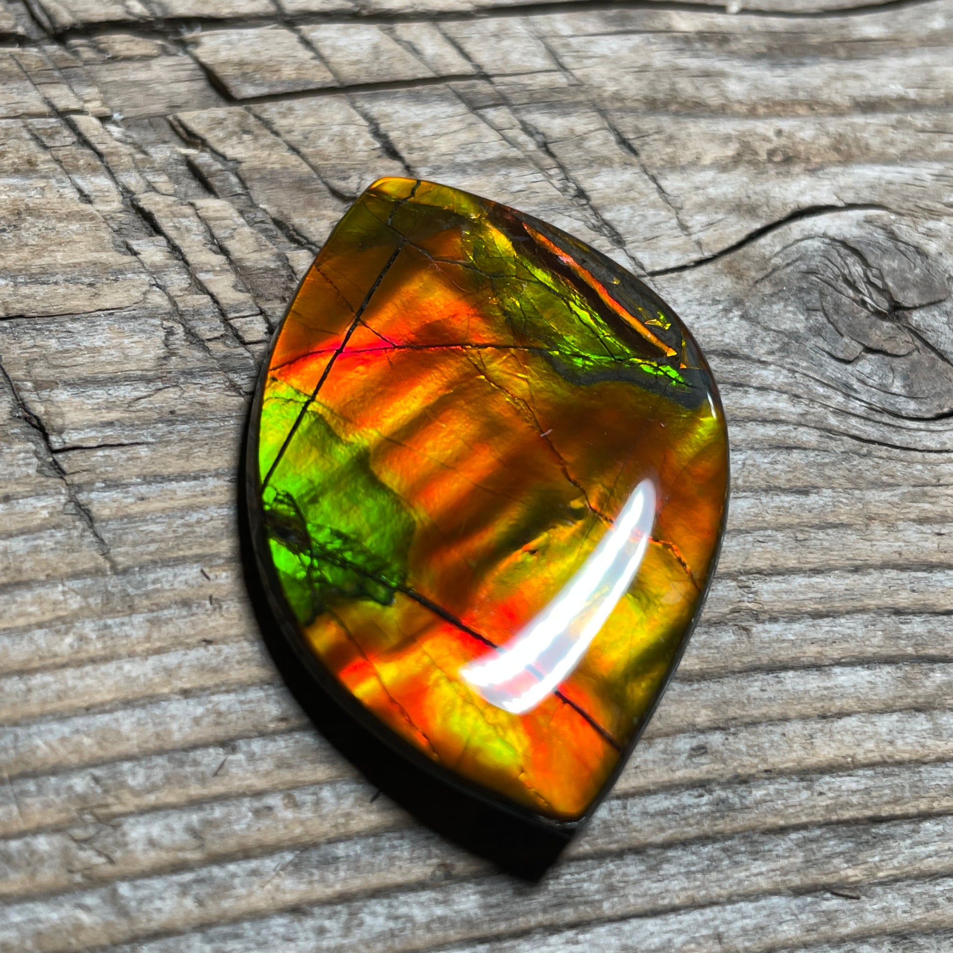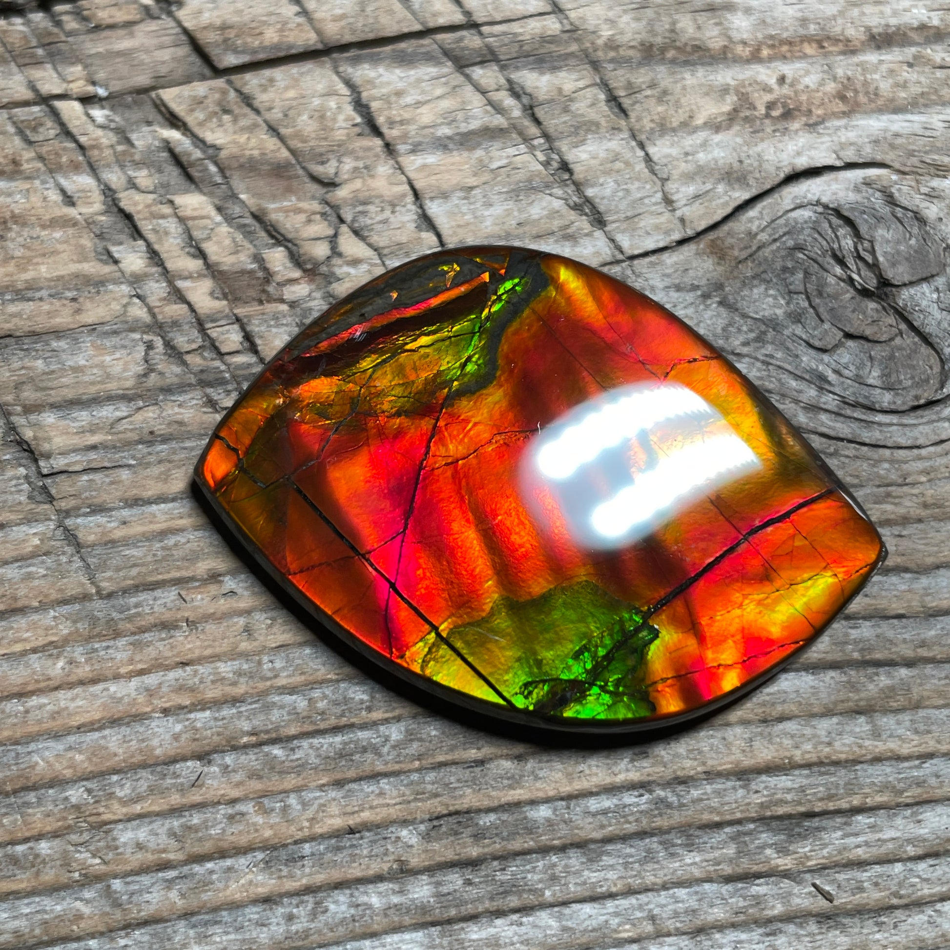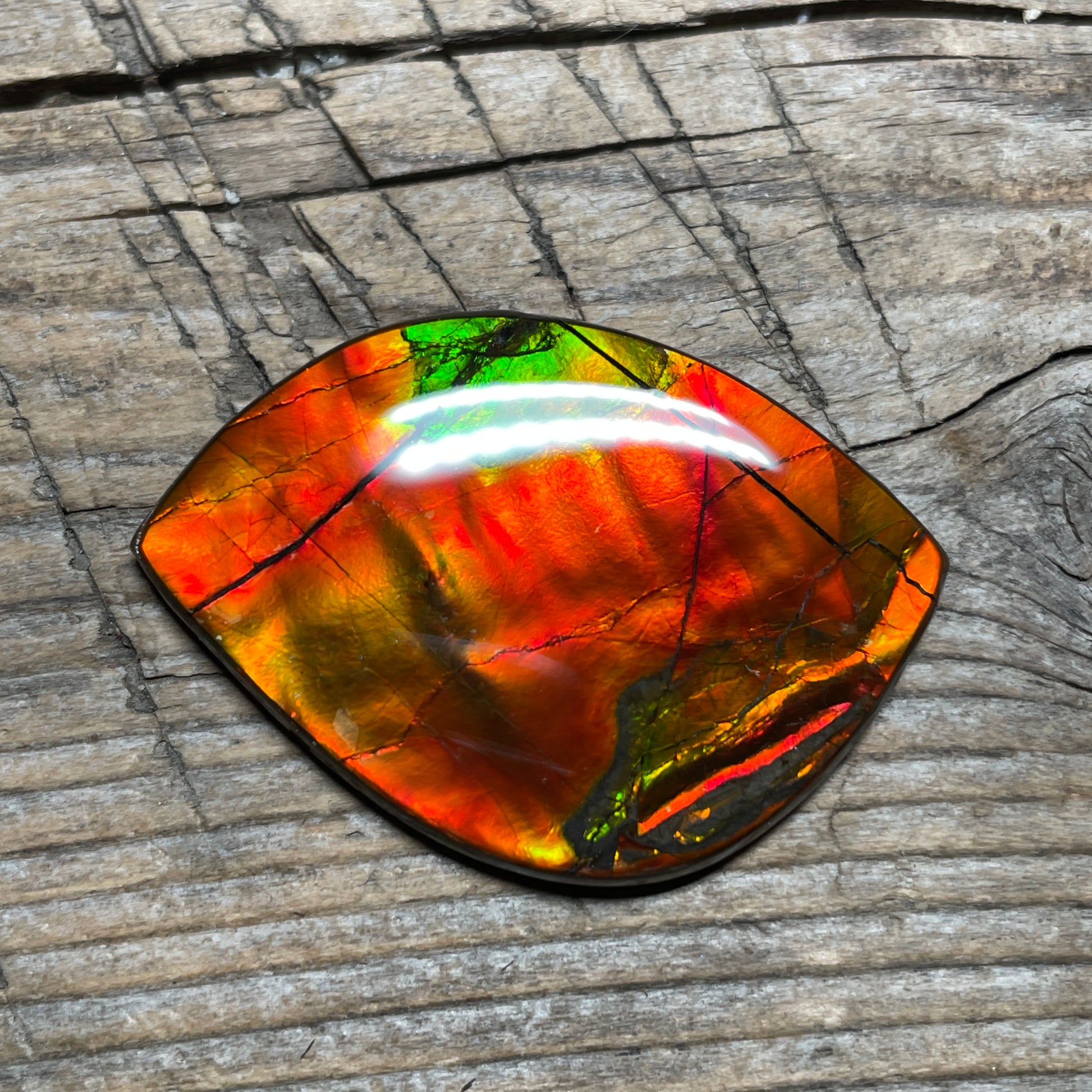 Bright Golden Red Ammolite Cabochon, Loose Gemstone, Genuine Canadian Ammonite