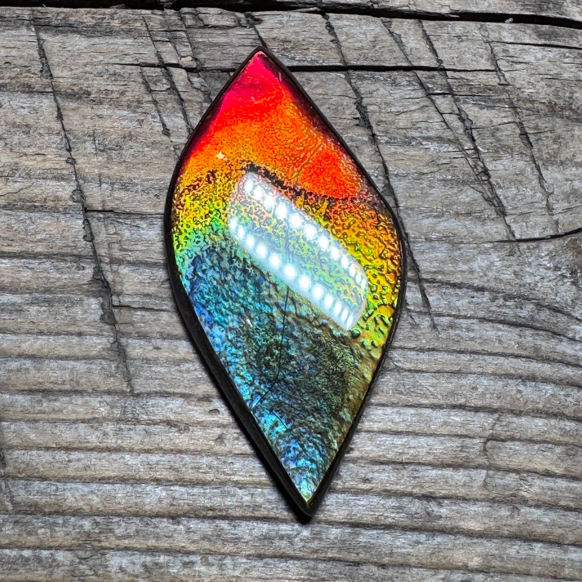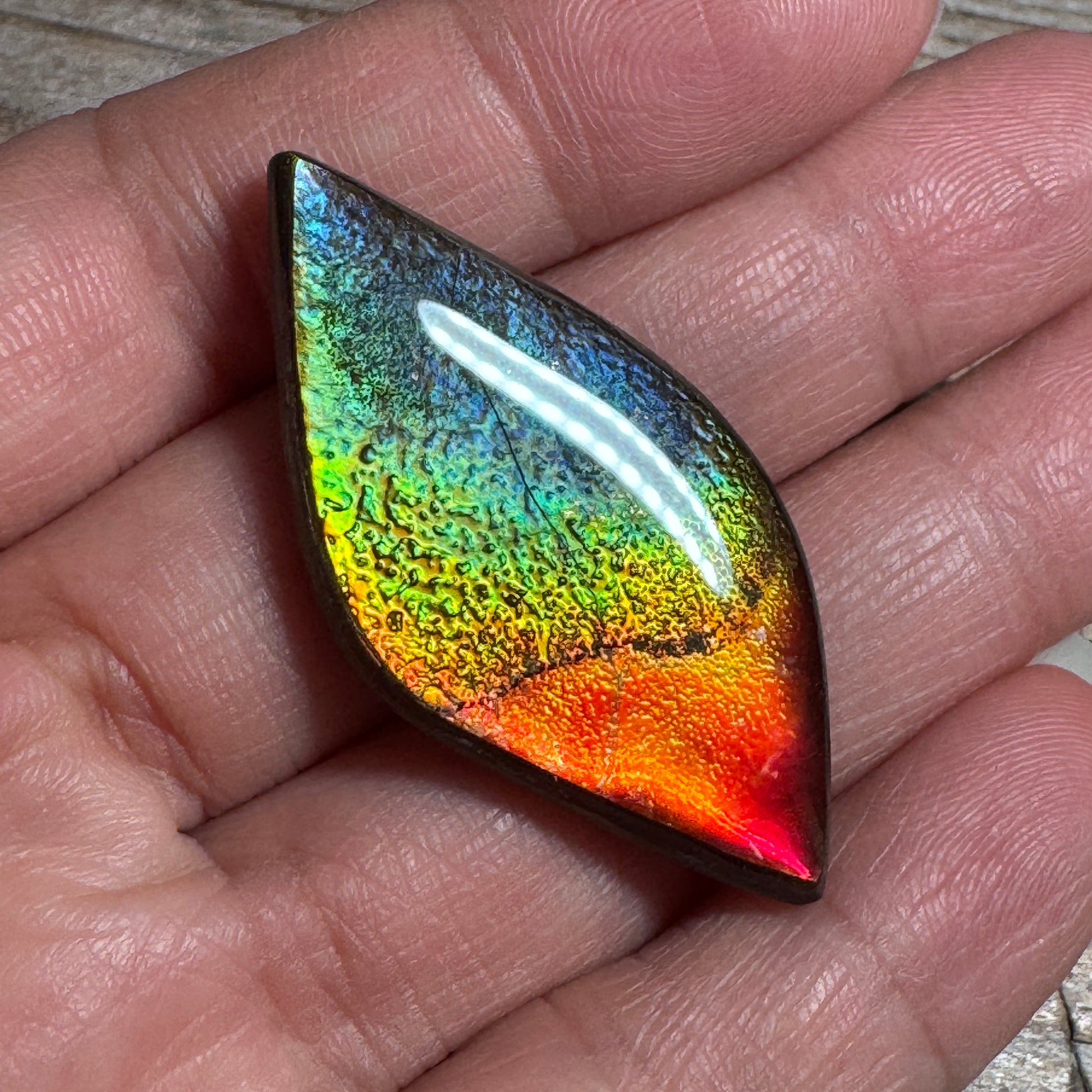 This ammolite cabochon may not be the brightest piece, but its rainbow hues are gorgeous!