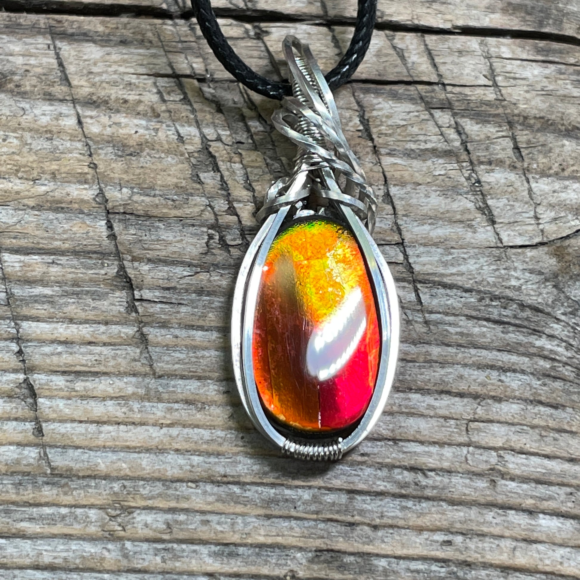 Wire-wrapped Ammolite Pendant Hand Made Argentium Silver TJ1130