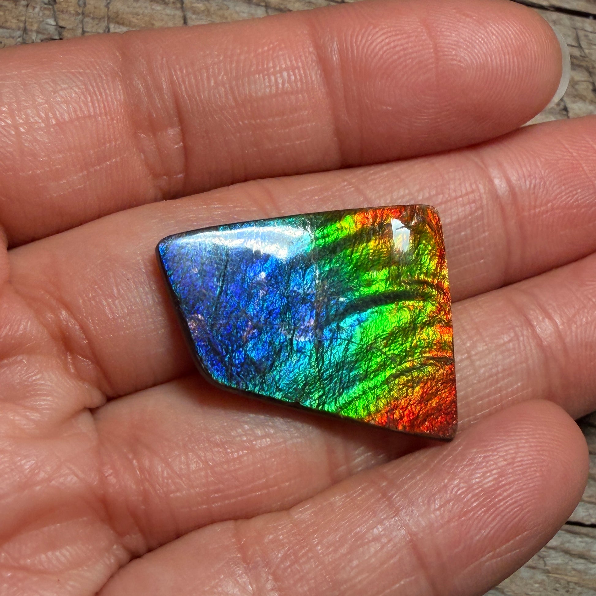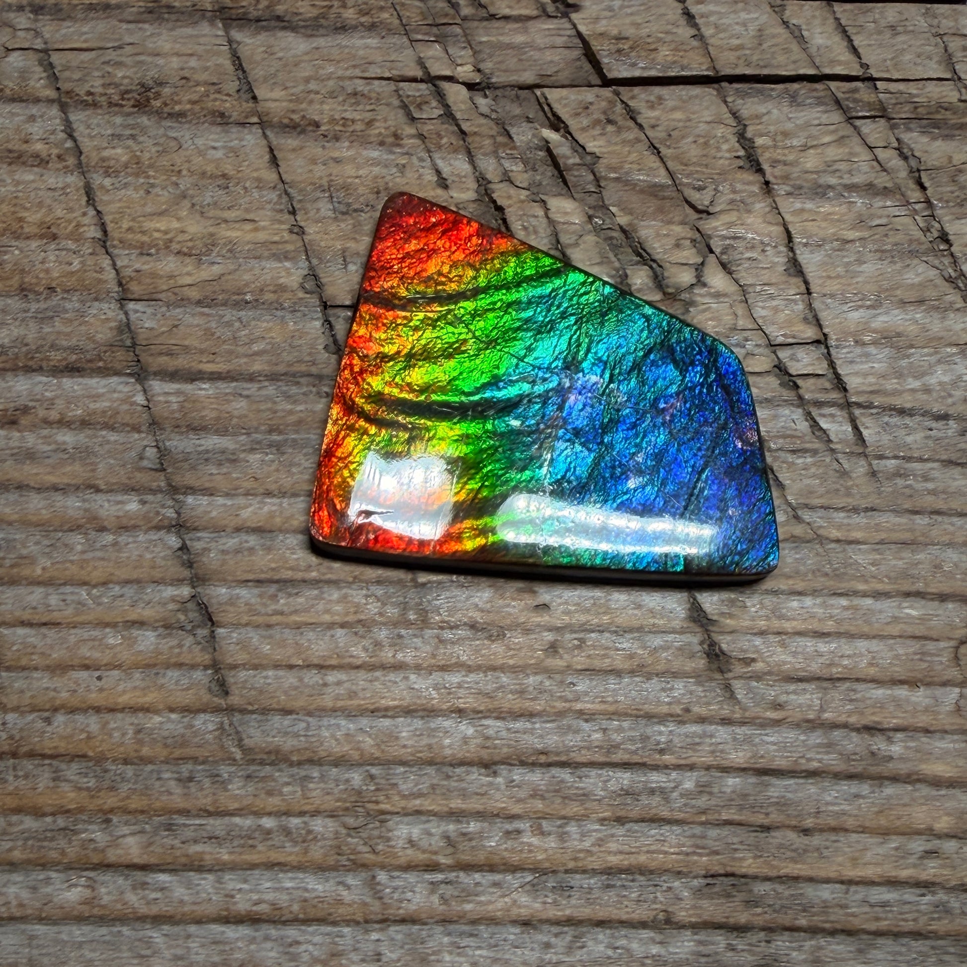 Polished Rainbow Ammolite Gemstone Cabochon Freeform Canadian Ammonite Fossil