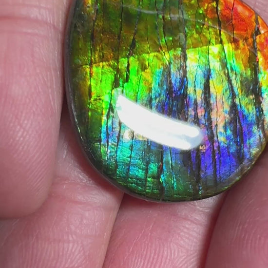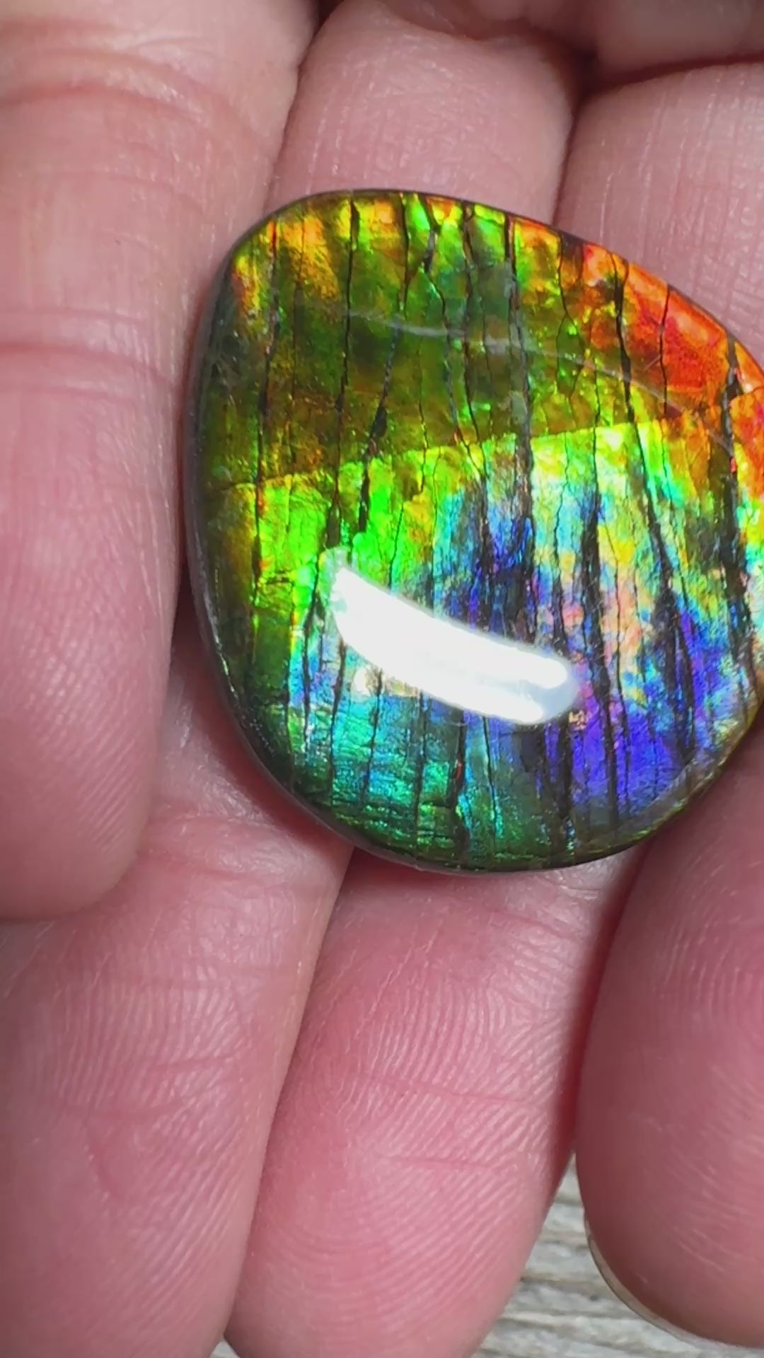 This ammolite cabochon has it all — vibrant rainbow colors and an attractive dragon-skin pattern!