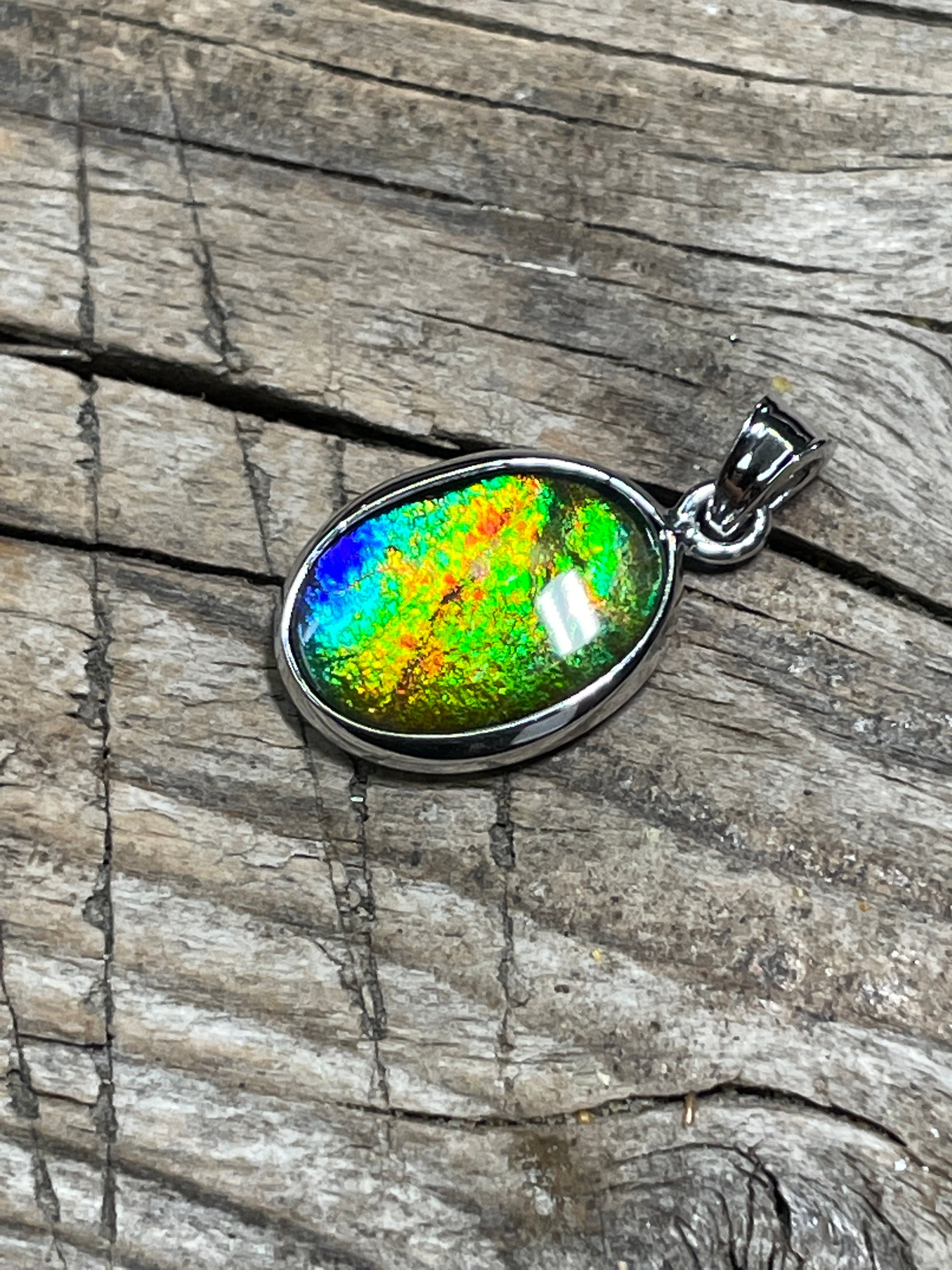 Ammonite Pendant Sterling 925 Silver Blue Green Gold Oval TJ1010