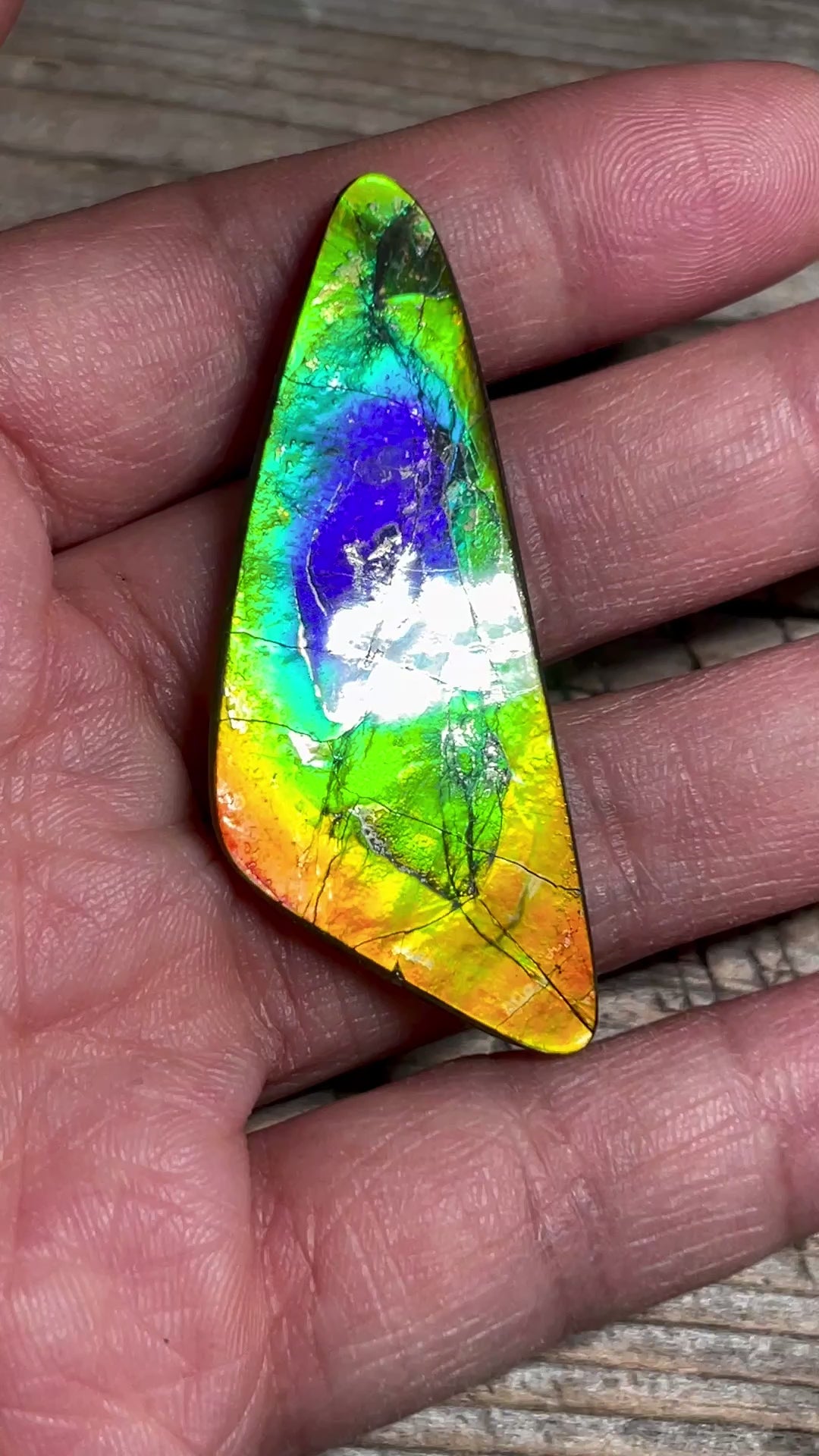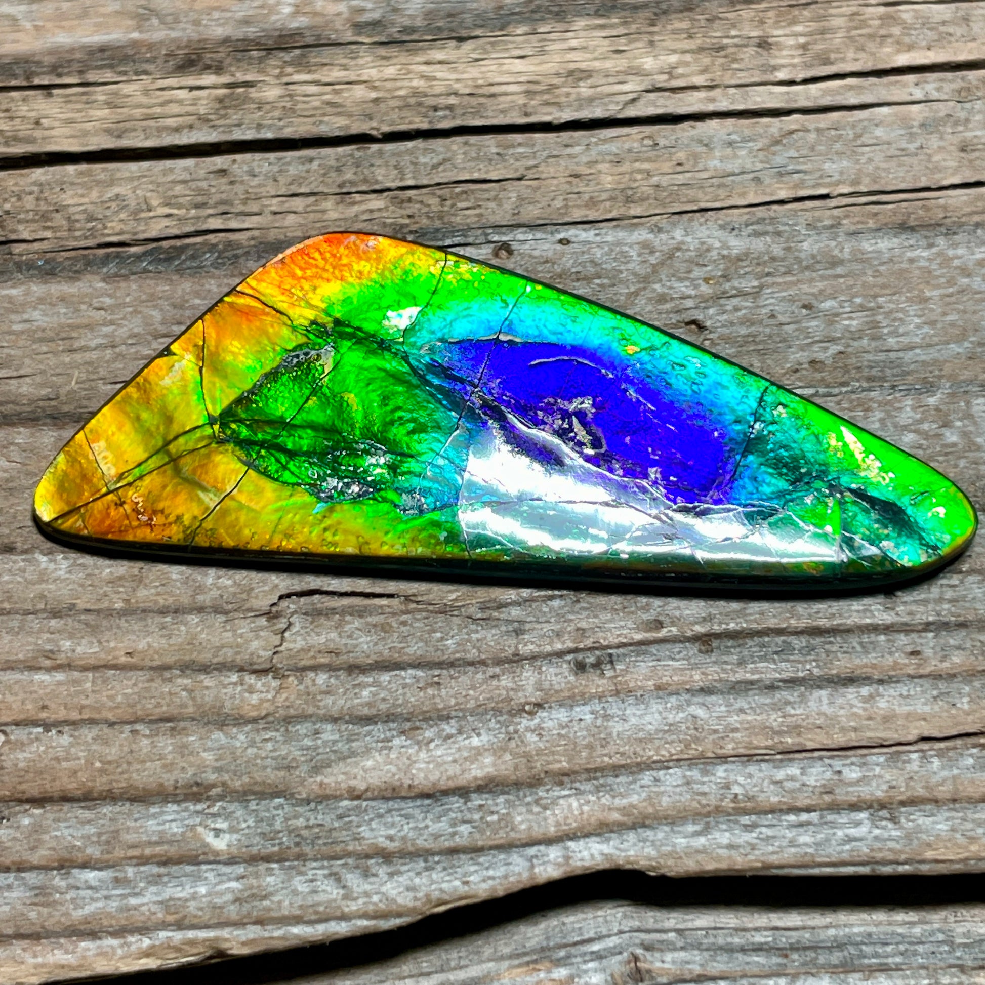 Double sided/Imperial Ammolite gem diaplay with gorgeous and bright colours. Hand polished to a brilliant shine!