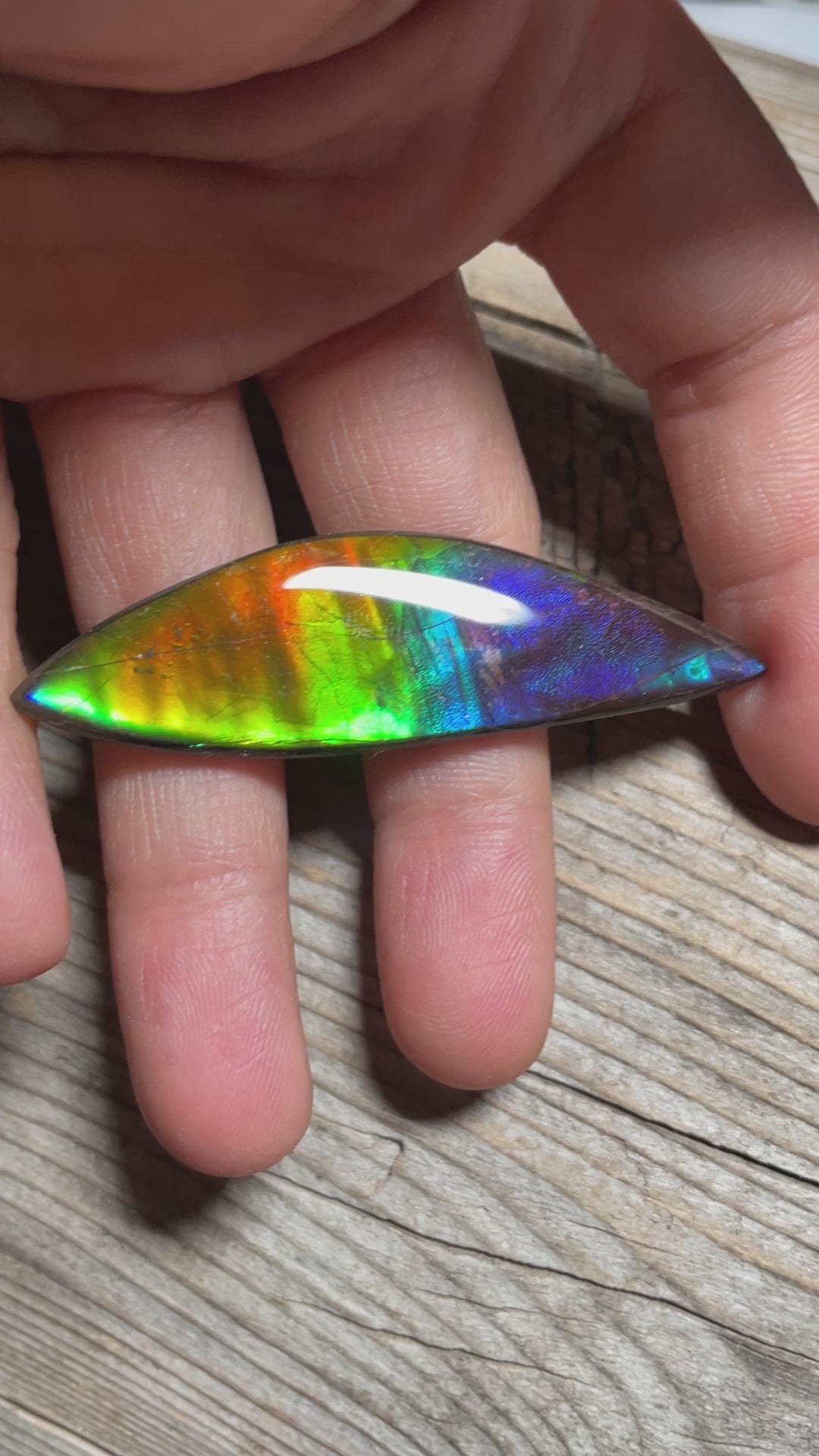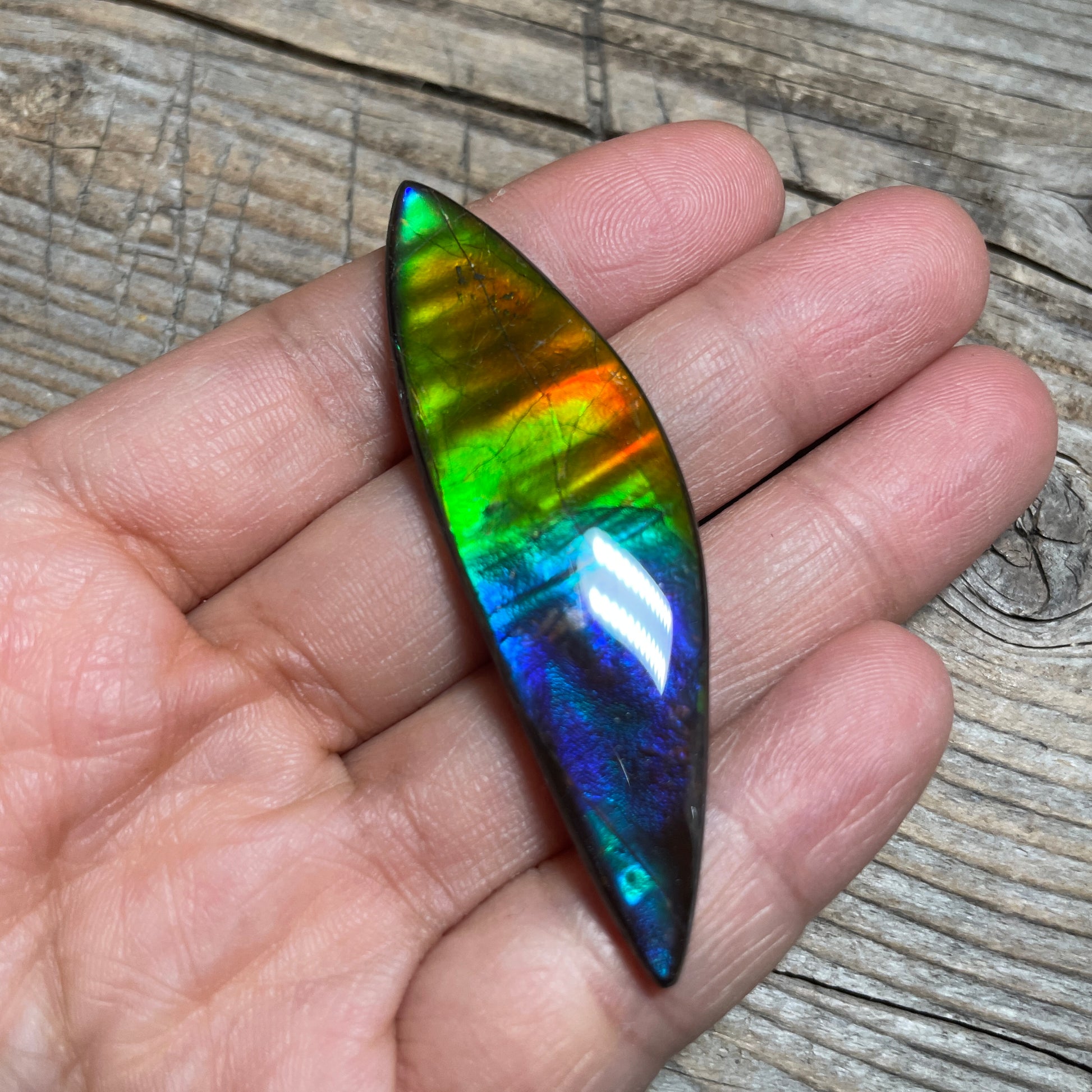 Rainbow Ammolite Gemstone, Freeform Cabochon, Canadian Ammonite Fossil